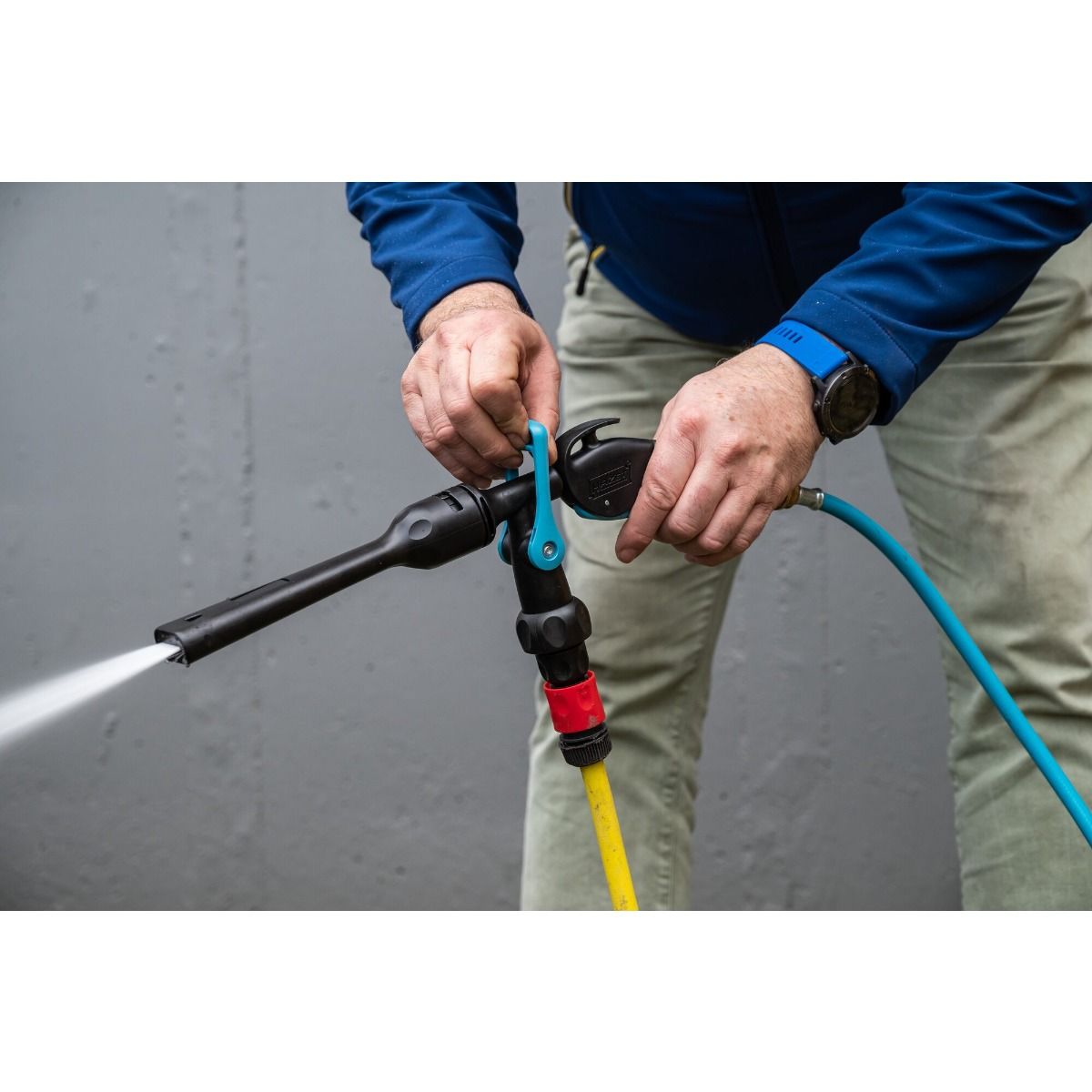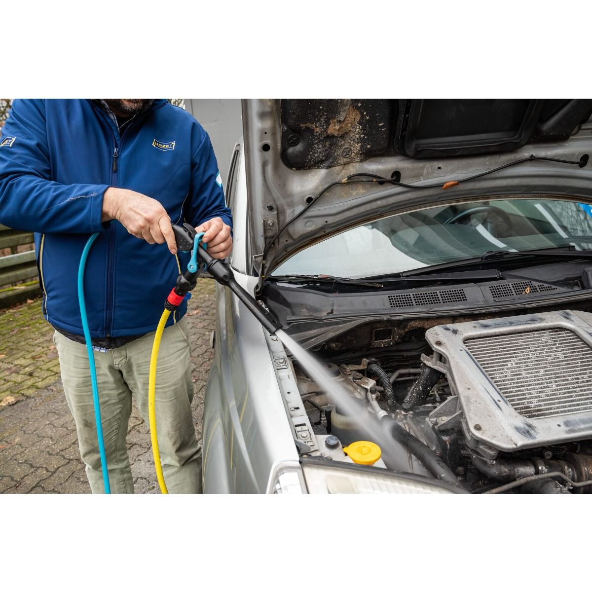 - Det er ingen sprut, effektiv rengjøring av maskiner, enheter og kjøretøydeler med jetwash dyse.
